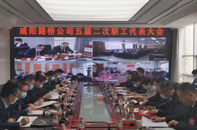 4月22日上午,咸陽(yáng)路橋公司五屆二次職工代表大會(huì)在咸陽(yáng)市公路局勝利召開(kāi)。為嚴(yán)格落實(shí)疫情防控要求,本次會(huì)議采取“現(xiàn)場(chǎng)+視頻”形式分別在4個(gè)會(huì)場(chǎng)召開(kāi),公司機(jī)關(guān)、各分公司正式代表、列席代表、公司機(jī)關(guān)職工70余人參加會(huì)議。咸陽(yáng)市委組織部、咸陽(yáng)市總工會(huì)、咸陽(yáng)市交通運(yùn)輸局、咸陽(yáng)市公路局有關(guān)領(lǐng)導(dǎo)出席會(huì)議。
